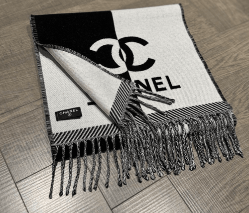 CHANEL SCARF BLACK AND WHITE