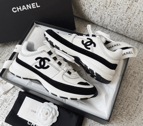 CHANEL Trainers - Calfskin & suede calfskin, white & black